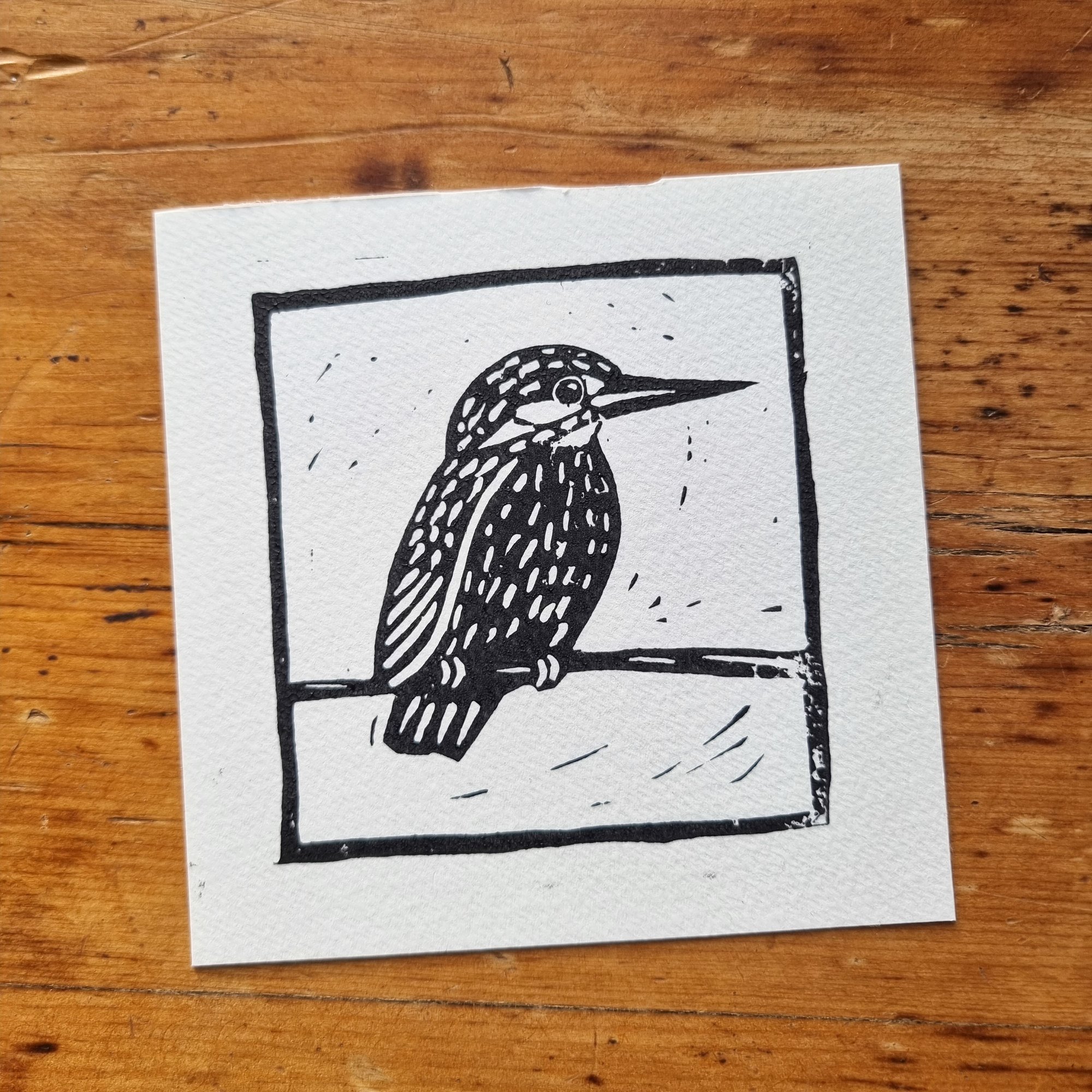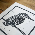 Hand printed in Black using my Kingfisher lino cut.