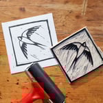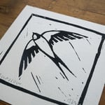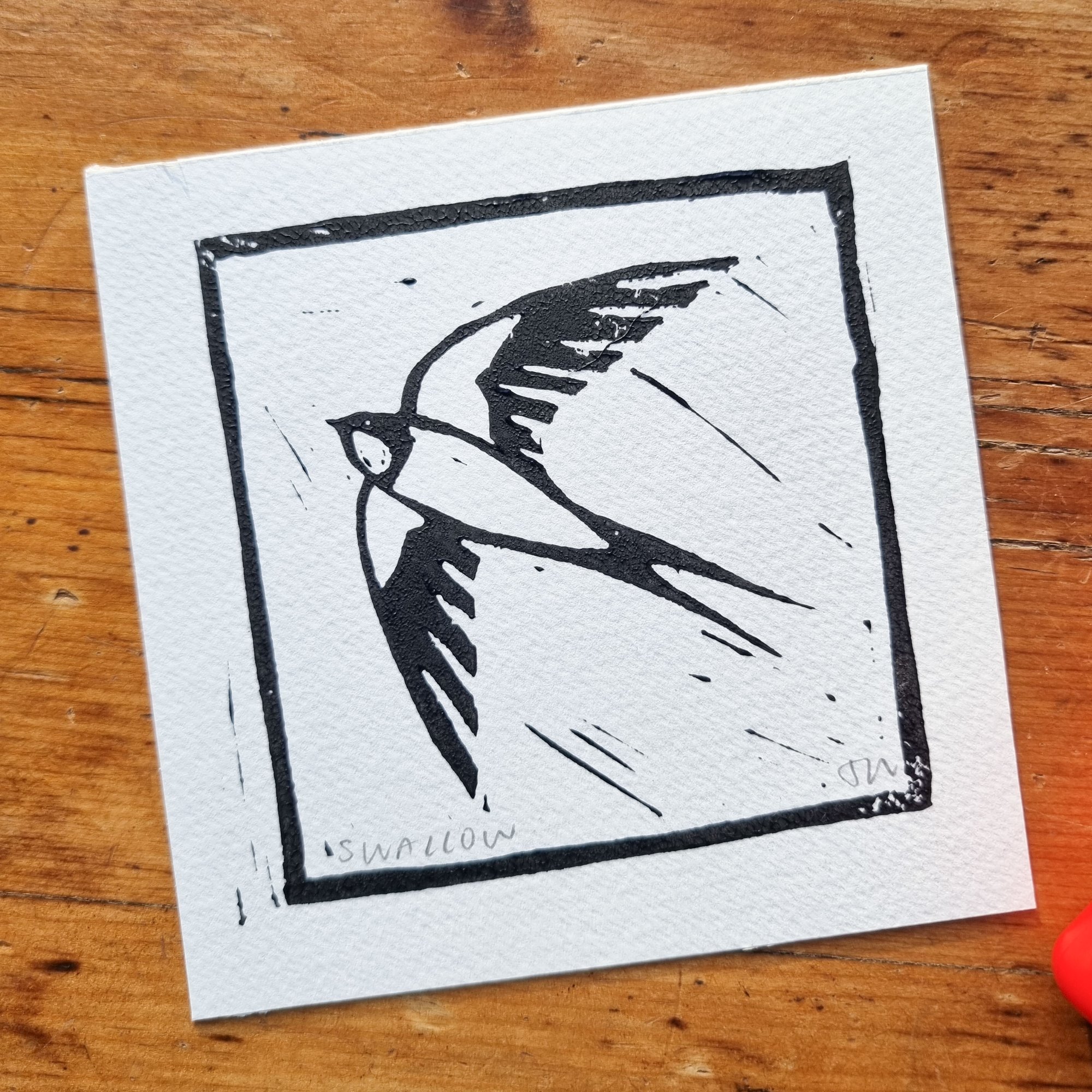 Handmade Lino Print of a Swallow on high quality, textured 300gsm watercolour paper.