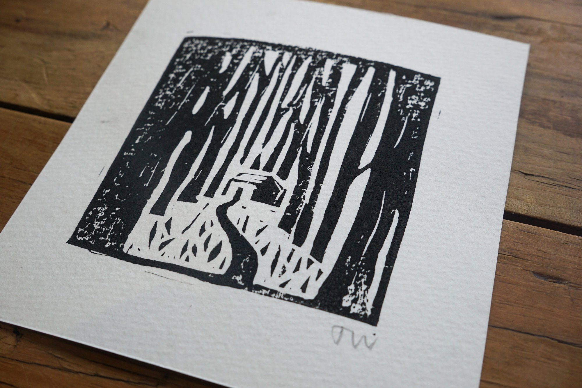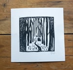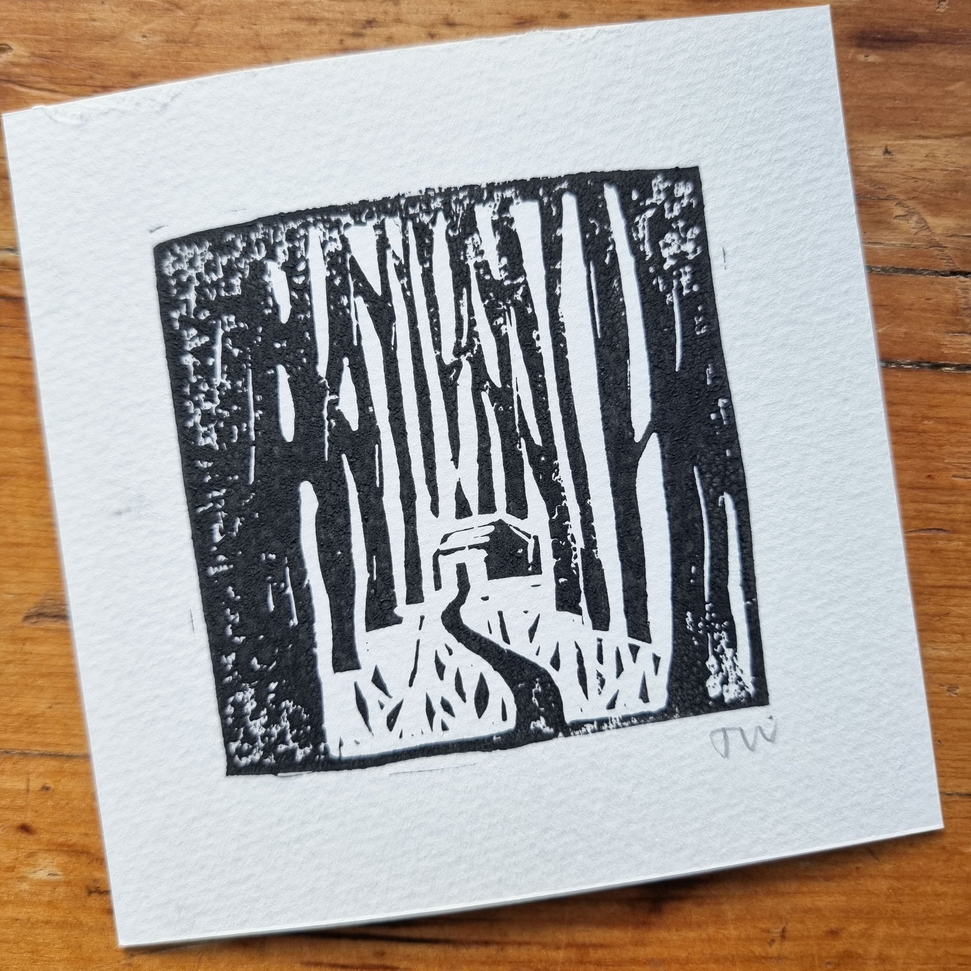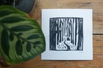 Hand printed in black using my cabin lino cut.